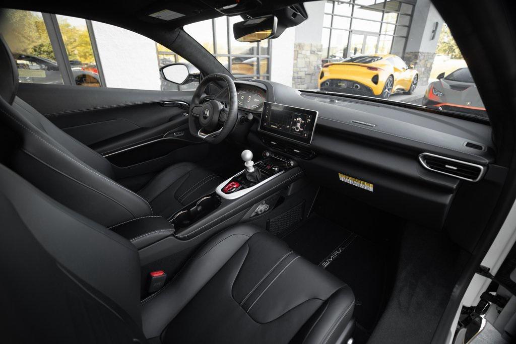 Lotus Salt Lake City presents this 2025 Lotus Emira V6 in Mist White.This performance coupe delivers the signature Lotus driving experience with a supercharged 3.5-liter V6 producing 400 horsepower and paired with a 6-speed manual transmission. Lightweight bonded aluminum construction, sport suspension, and Michelin Pilot Sport Cup 2 tires combine to deliver sharp handling and responsive performance. The refined interior includes black leather, KEF premium audio, and digital driver displays.Highlighted Specifications & Packages:3.5-liter V6 engine with Edelbrock TVS 1740 Supercharger, 400 HP6-Speed Manual TransmissionSport Suspension20-inch V-Spoke Dia Cut Silver & Black Forged WheelsBilstein Monotube DampersLightweight High Performance 2-piece Brake DiscsRed Brake CalipersMist White ExteriorExterior Black PackBlack Leather InteriorBlack Leather Trimmed Steering WheelBlack Technical Fabric Headliner12.3-inch TFT Instrument Display10.25-inch HMI TouchscreenKEF Premium AudioDual-Zone Climate ControlSport PedalsPremium Carpet Floor MatsBlack and Silver Nose Badge with Center CapsPrivacy GlassBattery MaintainerMichelin Pilot Sport Cup 2 TiresElectronic Monitoring SystemWireless Apple CarPlay and Android Auto12-way Adjustable Heated SeatsHomelinkFuel Economy and Efficiency:EPA-estimated 19 MPG combined (16 city / 24 highway)Warranty Coverage:3-Year / 36,000 Mile Warranty8-Year Chassis Corrosion WarrantySchedule your private appointment today.When you buy from Salt Lake City Motorcars, you're backed by one of the top luxury performance service centers in the region. Our South Jordan facility is equipped with cutting-edge tools and certified technicians to ensure your vehicle gets the care it deserves.Lotus Salt Lake City1231 W South Jordan ParkwaySouth Jordan, UT 84095