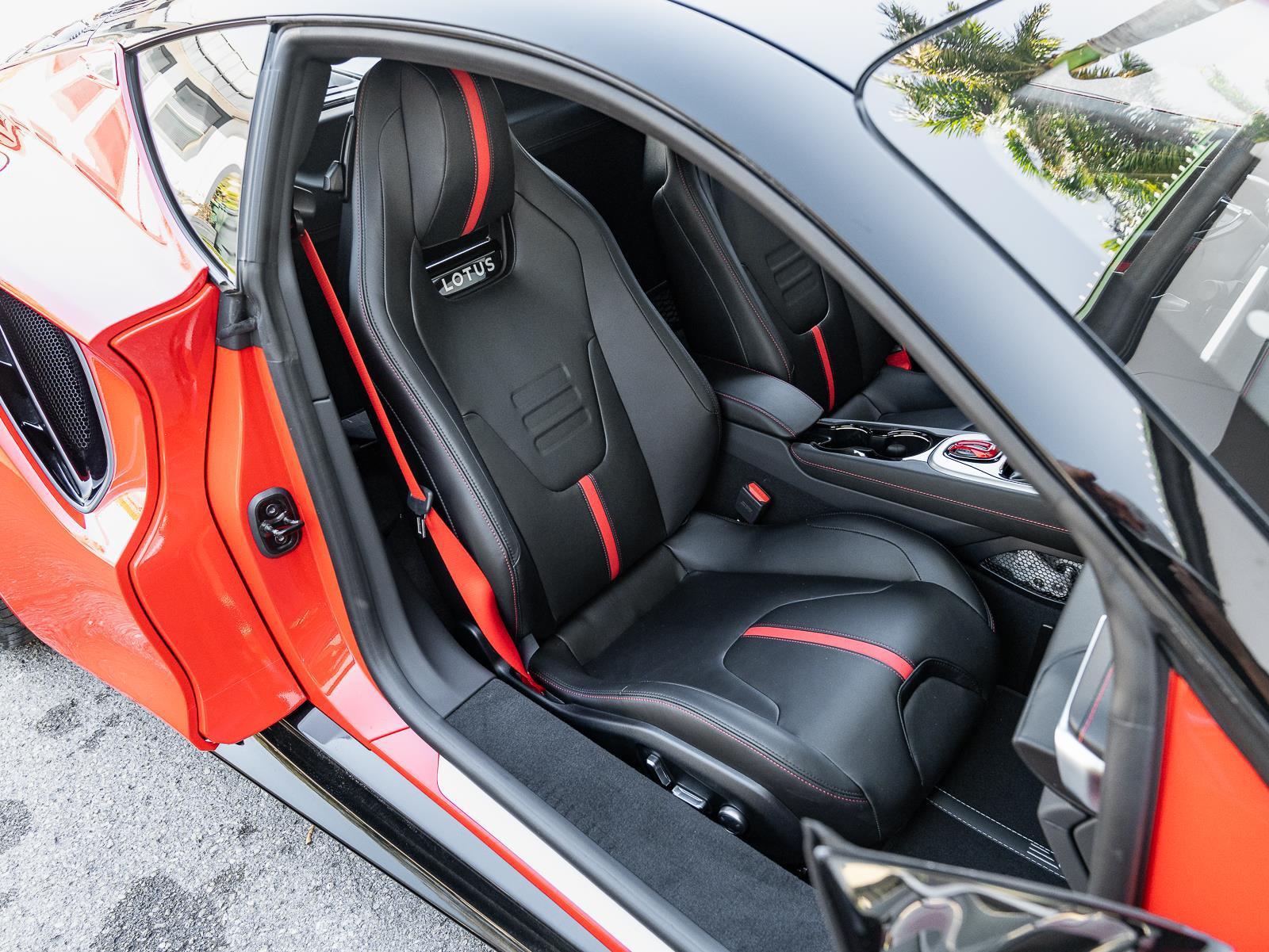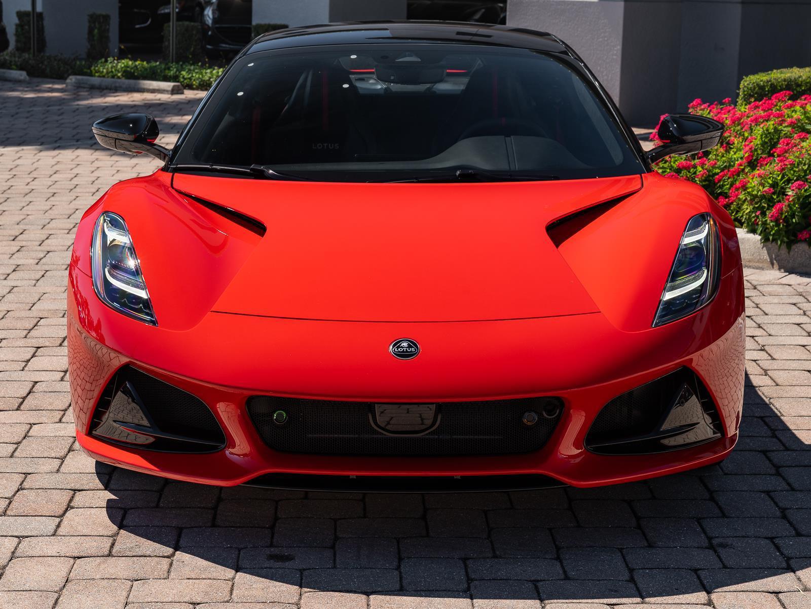 This brand new 2026 Lotus Emira SE V6 Manual finished in striking Vivid Red over a Black interior represents one of the purest modern driver focused sports cars available, combining mid engine balance with an increasingly rare analog manual transmission experience. Power comes from a 3.5 liter supercharged V6 producing 400 horsepower and 310 lb ft of torque, paired to a 6 speed manual transmission driving the rear wheels through a limited slip differential. Performance is highly engaging, with 0 to 60 mph achieved in 4.3 seconds and a top speed of 180 mph. The lightweight bonded aluminum chassis and mid engine architecture contribute to a curb weight near 3,500 lbs, delivering exceptional steering precision and dynamic balance that reflect Lotus engineering philosophy centered on driver feedback rather than raw numbers. Chassis dynamics are a defining highlight, featuring double wishbone suspension front and rear with coil springs and high pressure monotube dampers, available in Touring or Sport calibration depending on driver preference. Hydraulic power steering provides outstanding road feel that is increasingly rare in modern performance cars, while large AP Racing brakes deliver strong and consistent stopping performance under demanding driving conditions. The cabin blends motorsport inspiration with modern usability, offering a fully digital instrument cluster, central touchscreen infotainment with Apple CarPlay and Android Auto, premium KEF audio, supportive sport seats, dual zone climate control, and exposed manual shift linkage that enhances the mechanical connection between driver and machine. With its brand new condition, bold Purple Haze specification, and purist mechanical configuration, the Emira SE V6 stands as a modern interpretation of classic Lotus values, prioritizing balance, engagement, and emotional driving experience while remaining comfortable enough for everyday usability. Options - Touring Suspension - Full Black pack - Red brake calipers - 20"" v spoke ultra lightweight gloss black wheels - Black leather with red accents interior materials - Black leather steering wheel with red TDC and stitching - Alcantara Headliner - Red Seat Belt - Black and Silver Nose badge and center caps - KEF Premium Audio - Goodyear Eagle F1 Supersport - Sport Pedals