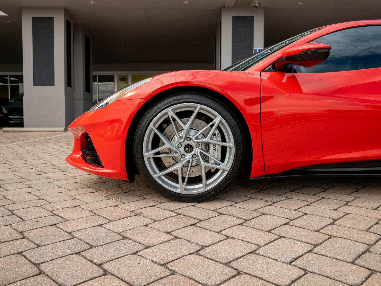 This 2026 Lotus Emira Turbo SE finished in striking Vivid Red over a purposeful Black interior with Red accents delivers sharp modern performance wrapped in unmistakable sports car attitude. The Vivid Red exterior intensifies the Emira's sculpted bodywork, highlighting its aggressive front fascia, deep side air intakes, and wide planted stance inspired by Lotus' hypercar engineering. Every line reflects aerodynamic intent and lightweight philosophy. Inside, the Black cabin accented with Red detailing creates a focused and energetic atmosphere, combining premium materials, contrast stitching, and a driver centered digital cockpit designed to maximize engagement. Showing only 3 miles, this Turbo SE remains in factory fresh condition and offers a virtually untouched ownership experience. Power comes from a 2.0 liter turbocharged inline 4 engine producing 400 horsepower and 354 lb ft of torque, paired to a rapid shifting 8 speed dual clutch transmission driving the rear wheels. Performance is immediate and precisely controlled. The Emira Turbo SE accelerates from 0 to 60 mph in 4.0 seconds and reaches a top speed of 180 mph, delivering strong turbocharged acceleration supported by Lotus' renowned chassis tuning. With a curb weight of 3,240 pounds, the bonded aluminum platform, double wishbone suspension system, and electronically controlled differential provide exceptional cornering precision and stability. High performance braking capability ensures confident stopping power, while aerodynamic balance maintains composure at speed. The 2026 Lotus Emira Turbo SE in Vivid Red stands as a bold and engaging driver's car, combining aggressive styling, lightweight engineering, and modern turbocharged performance into a machine built for enthusiasts who demand pure connection behind the wheel.